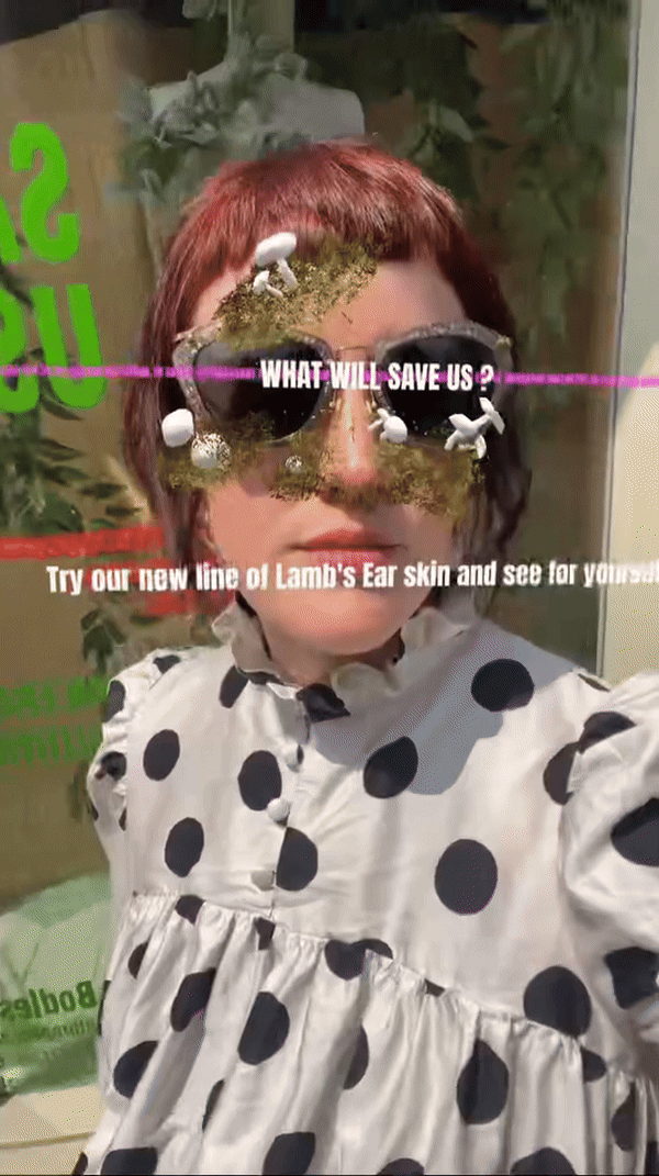 By scanning the vinyl QR code on the window itself, viewers can interact with the AR element - a web based experience that prompts the viewer to point their phone at their own body. Once they do, it triggers an animation of trichomes growing from their skin and bees pollinating from the viewer’s body. This immerses them into the speculative environment where the viewer's body adapts and becomes resilient to a hostile, byzantine future.
