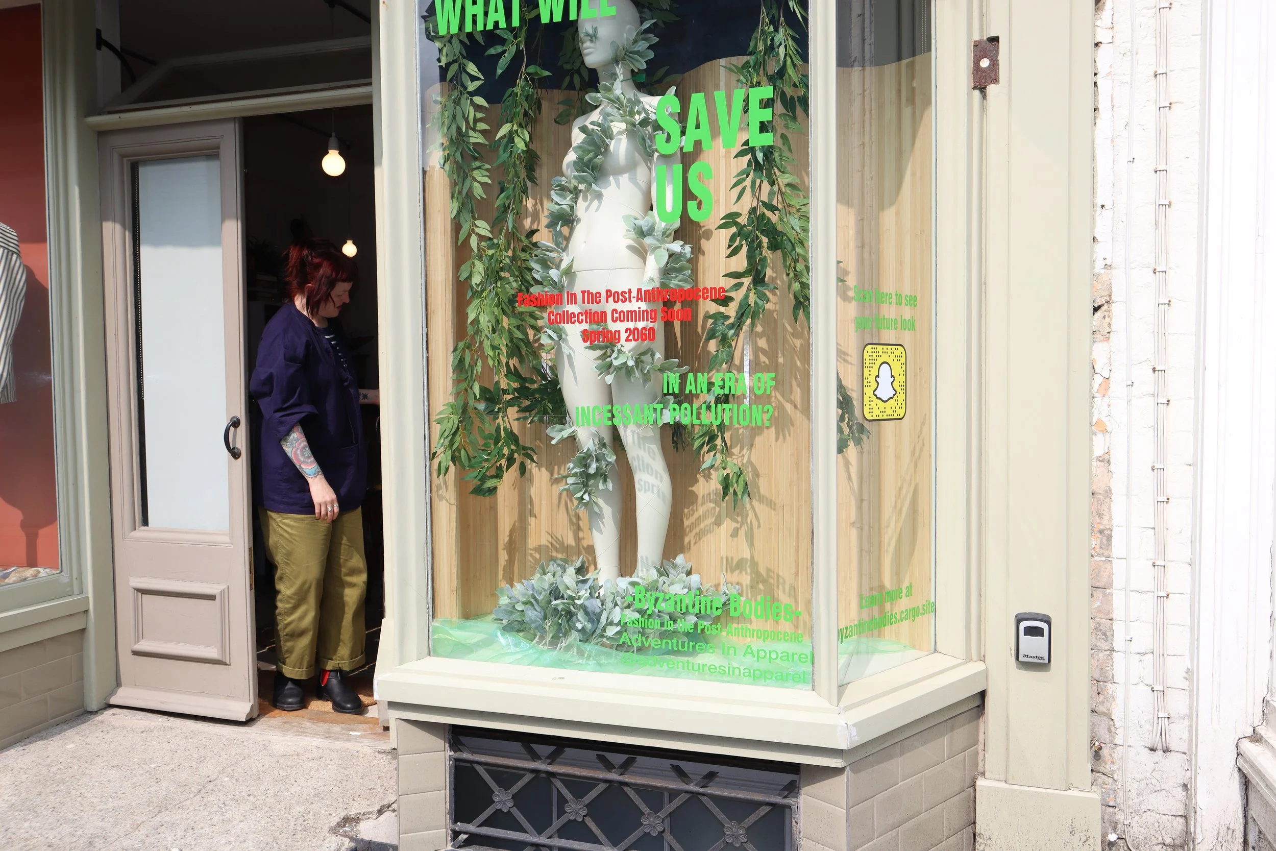 ‘Byzantine Bodies: Fashion in the Post-Anthropocene’ is a speculative window display that ‘displays’ a precarious future of fashion.